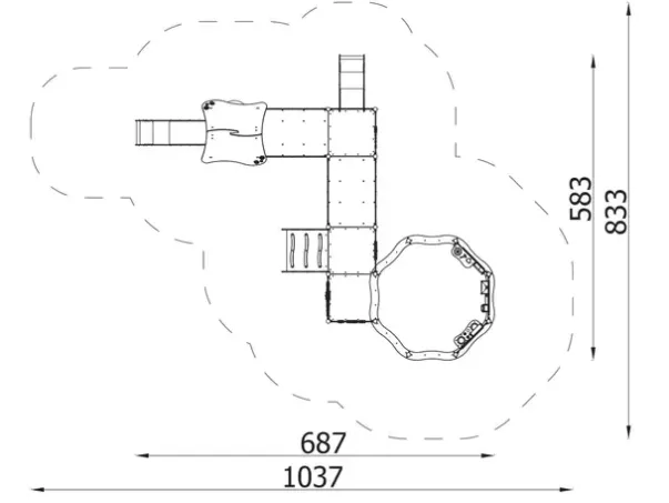 Sikkerhetsareal: L1037 x B833 cm, 54 m²