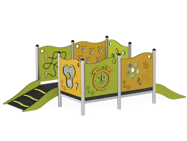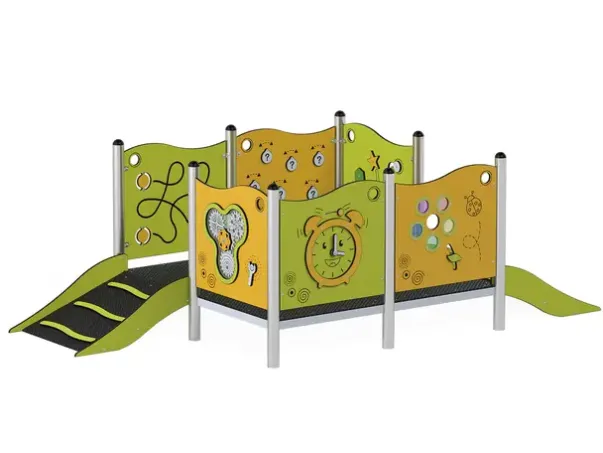 Funksjoner: Lekepaneler, plattform og rampe