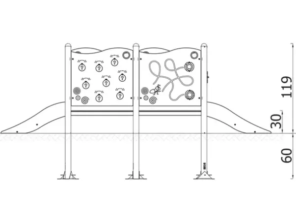 Materiale: Strukturelle elementer av rustfritt stål (Ø76,1 mm), paneler av HDPE, plattform av antiskli HPL (12 mm), skruer og beslag av rustfritt stål