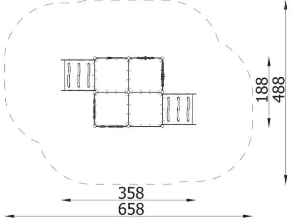 Sikkerhetsareal: L658 x B488 cm, 27 m²