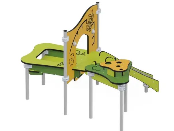 Materiale: Strukturelle elementer i rustfritt stål, paneler av HDPE (15 mm), skruer og beslag av rustfritt stål