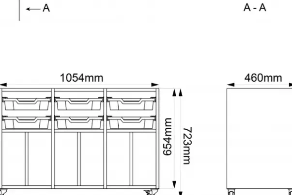 Materiale: 19 mm sponplate med melamin, kasser av plast