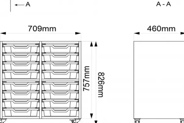 Materiale: 19 mm sponplate med melamin, kasser av plast