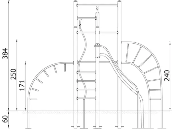 Funksjoner: Brannstang, skråstil klatrestige, klatrevegg., balansestenger