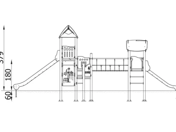 Funksjoner: Lekehus, klatrestativ, sklie, taubro