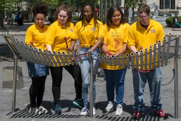 Papilio er en rørformet metallofon av klokketypen, og er konstruert med noter av anodiserte aluminiumsrør, opphengt av rustfrie stålkabler og støttet av en rustfri stålramme. Stemmet i tonearten C-dur betyr den pentatoniske karakteren til instrumentet at det ikke er feil toner, og enhver kombinasjon av lyder er behagelig. Toneområdet er fra mellom C til C7 og spenner over 3 oktaver. Papilio kan enkelt spilles av 4 personer samtidig.