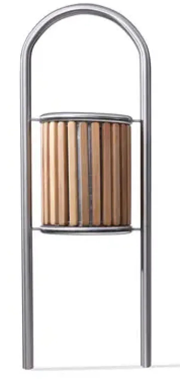 Laget i rustfritt stål og tre, H: 150cm, Ø:51cm. 30 liter