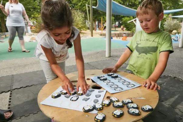 Pingviner i stein som inspirerer til bruk av retnings- og posisjonsspråk, matchingspraksis, problemløsning, mønsterlaging, logisk tenkning og sekvenseringsferdigheter. Alt dette er avgjørende for at barn skal utvikle seg og mestre i hverdagen og gjennom deres interaksjon med teknologi.