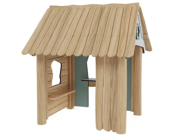 Funksjoner: Lekehus med sittebenk, luke og vindu