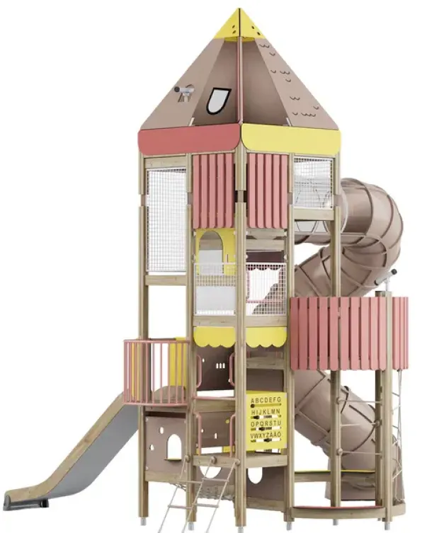 Funksjoner: Klatreelementer, lekepaneler, leketårn og sklier