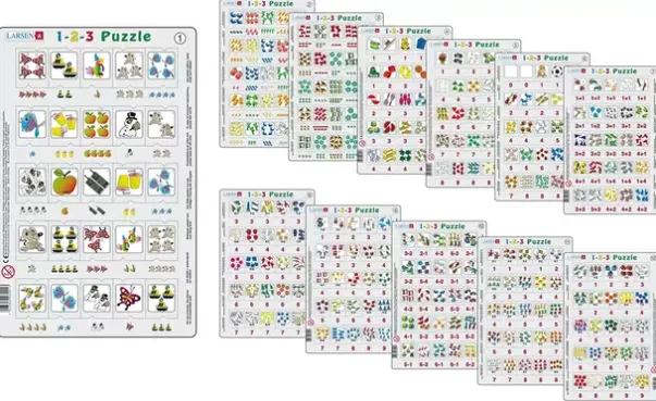 Hvert puslespill har 25 brikker. Alle brettene og brikkene er laget i solid kartong.