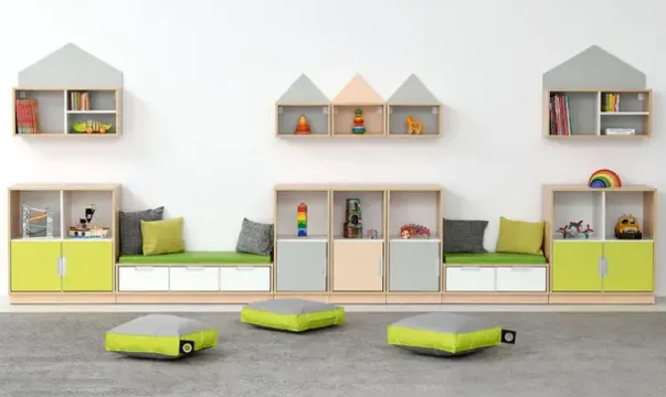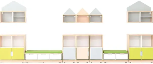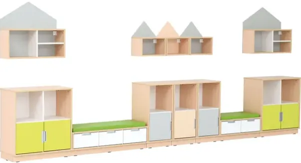 Materiale: Møbelspon 18 mm, laminat lys lønn og hvit farge, MDF