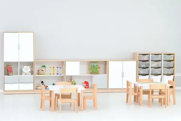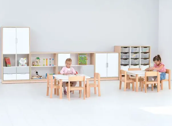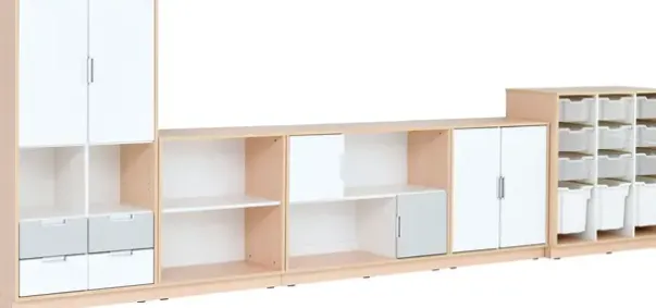 Materiale: Møbelspon 18 mm, laminat lys lønn, MDF