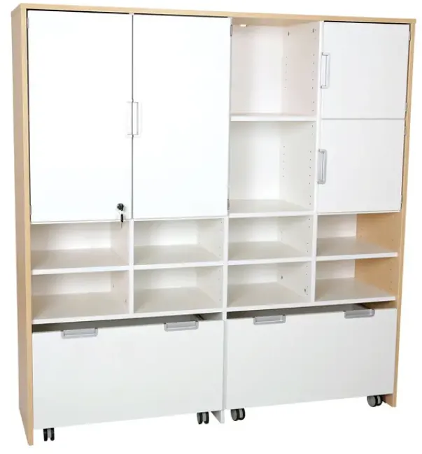Materiale: Møbelspon 18 mm, laminat lys lønn og hvit farge, MDF, aluminium