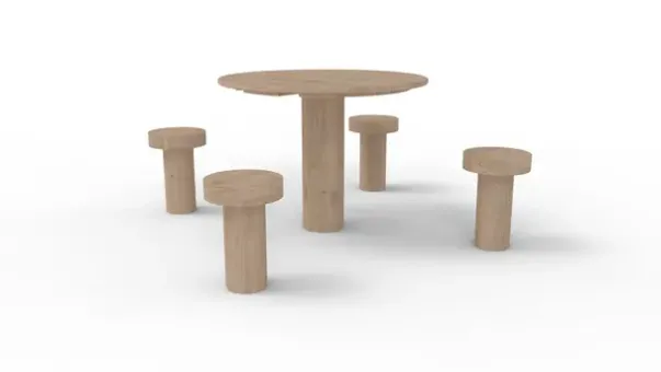 Mål: Bord Ø80 cm, stol Ø24 cm