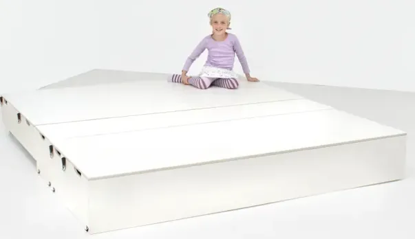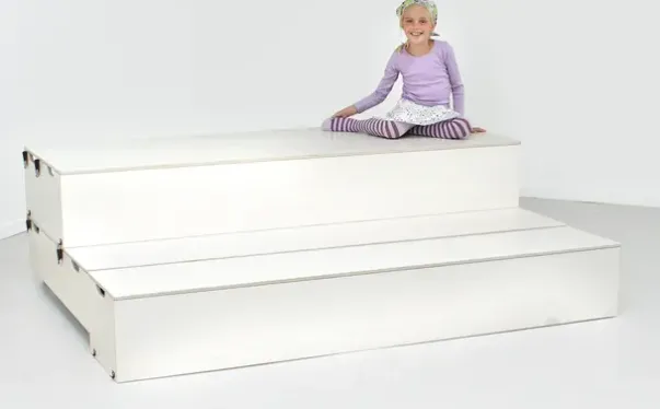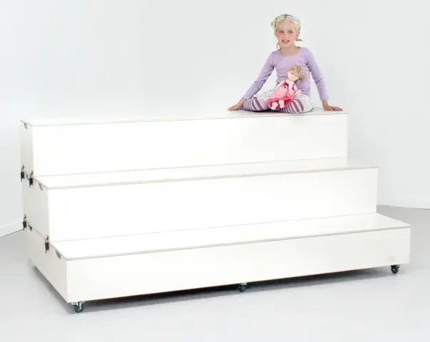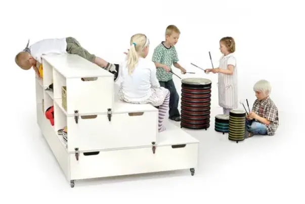 Scenetrappen kan lett omdannes til et forhøyet platå til barnas egen opptreden, og den lille forhøyningen gjør at barna mer føler de opptrer. Scenetrappen er lett å omdanne og flytte rundt på, og i det daglige er det god oppbevaringsplass på baksiden.