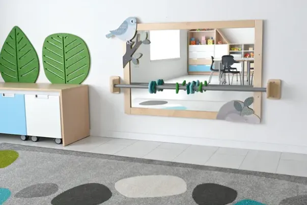 Barre til å feste på vegg som lekeelement eller sammen med speil.