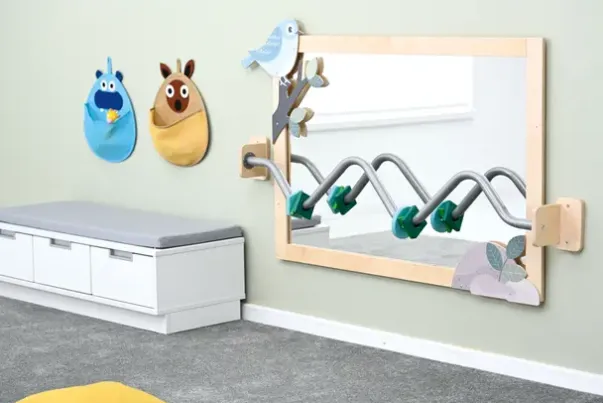 Barre til å feste på vegg som lekeelement eller sammen med speil.