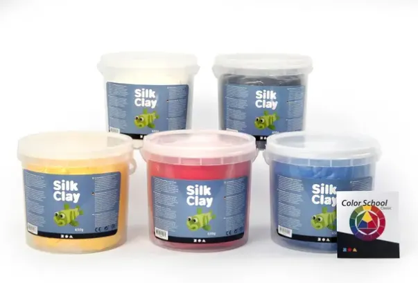 Settet består av 5 bokser a 650 gram: rød, gul, blå, hvit og sort.