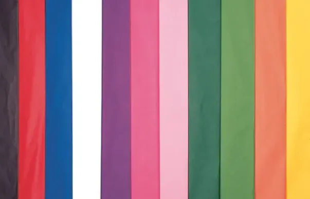 Pakken inneholder 25 ark av hvit , orange , grønn , mørk grønn , gul, brun , lys blå , blå , mørk blå , rosa , rød , mørk rød , lilla , mørk lilla , sort. Størrelse 50 x 70 cm.Silkepapiret er syrefritt og vannfast.