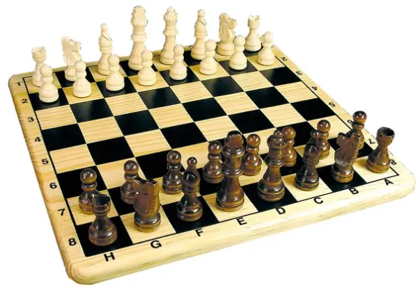 Sjakk med brikker og spillbrett i tre. Inneholder: 1 spillebrett, 32 sjakkbriker.Størrelse: Ca 30 x 30 cm.