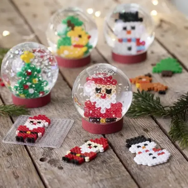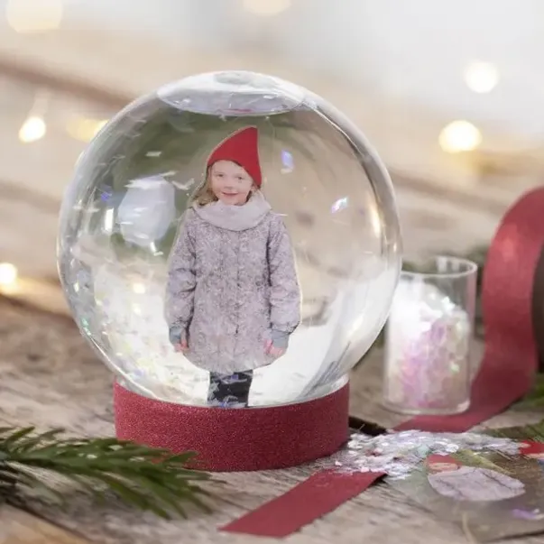 Lim pynt inne i lokkets bunn med en lim som tåler vann, f.eks. limpistol, fyll med vann og evt. glitter eller snø. For det beste resultatet fylles kulen ca. en halv centimeter fra kanten, alt etter massefyllen på pynten, deretter skrues lokket på. Lokket kan også dekoreres mes f.eks. washitape. Lag små figurer som kan tåle å stå i vann som f.eks. krympeplast, laminerte bilder, cernit figurer, rørperler etc. Den ferdige snøkulen kan brukes som pynt.