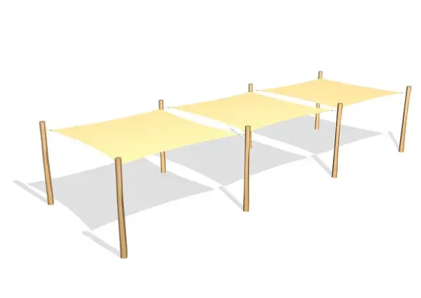 Mål: Stolper 8 x L300 cm Ø8-12 , seil 3 x L360 x B360 cm