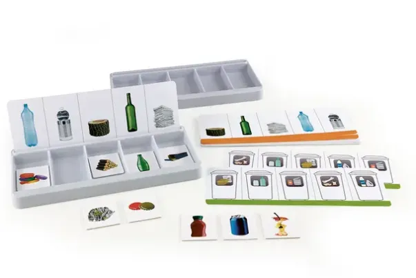 Med 2 sorteringsbokser, 12 instruksjonskort og 60 fotokort.