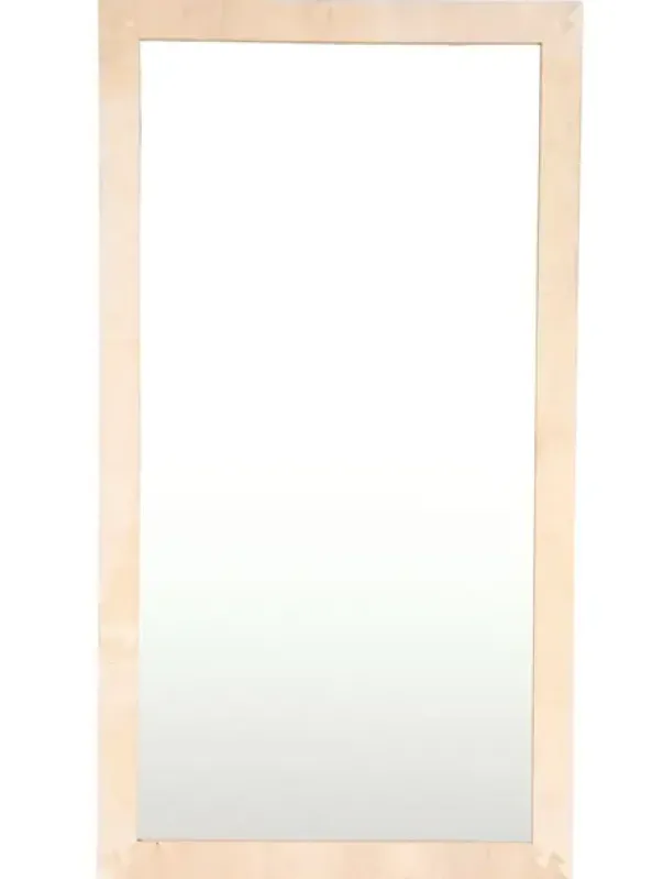 Beskrivelse og funksjonalitet:Speil med ramme i kryssfiner. Sikkerhetsspeil med folie.