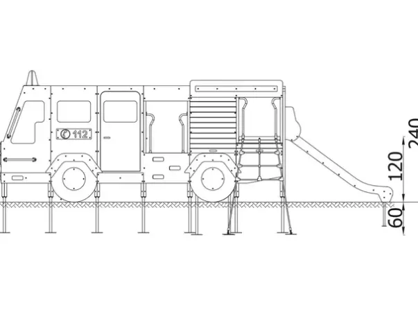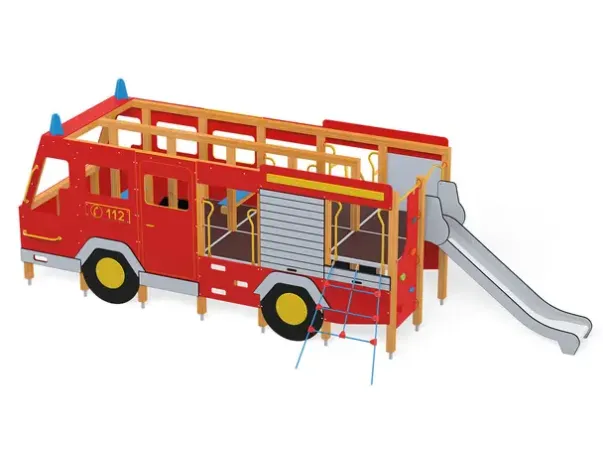 Materiale. Limtrestolper , galvaniserte stålføtter , tau av polypropylen med stålkjerne, pulverlakkert stål og HDPE plater