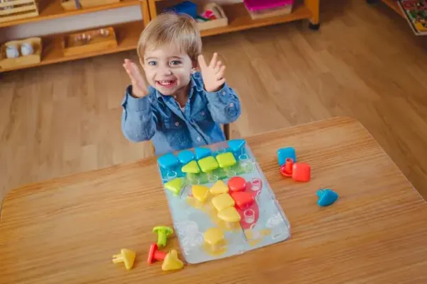 Antall deler: 1 brett, 4 motivkort i papp og 32 stifter