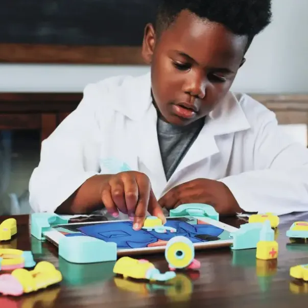 Tacto Doktor er verdens første interaktive legesett med en STEM- vri. Det medfølger 12 legeverktøy som samhandler med skjermen! Appen medfølger i settet, helt gratis. Rolleleken kan trygge barn og gjør neste legebesøk mer behagelig. Tacto Doktor har 3 spill med over 100 pasienter og sykdommer!