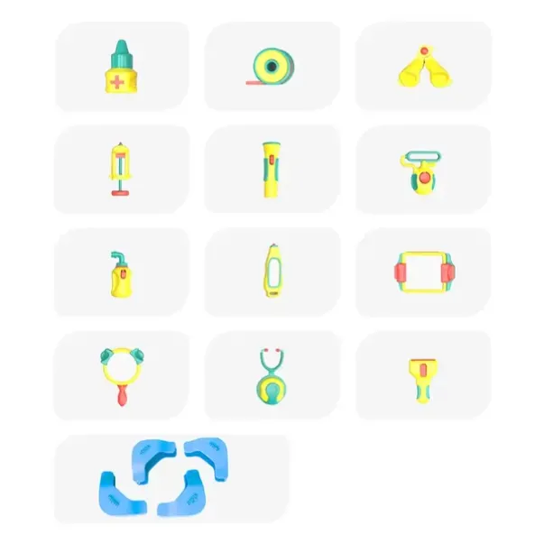 Innehold: Tacto Doktor inkluderer 12 medisinske verktøruy i plast og 4 hjørner til iPad/Android/Fire. Vær oppmerksom på at nettbrettet ikke er inkludert.