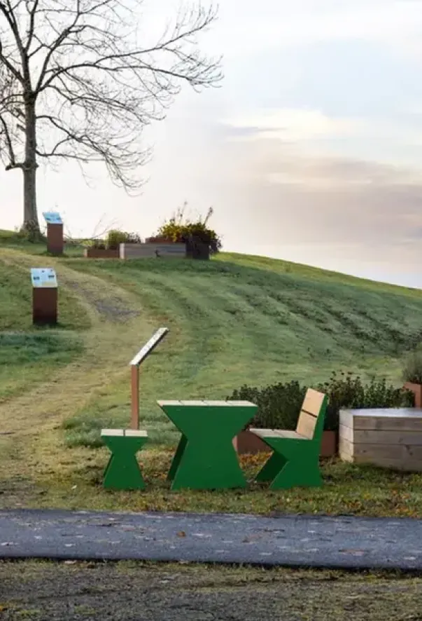 Tuva Time er en serie utemøbler med kvalitetstid i fokus. Det karakteristiske timeglass-designet gir god plass til inn- og utstigning mellom benk og bord for både store og små. Gode og enkle forankringsmuligheter med klargjorte festepunkter gjør møblene sikre i alle miljøer.