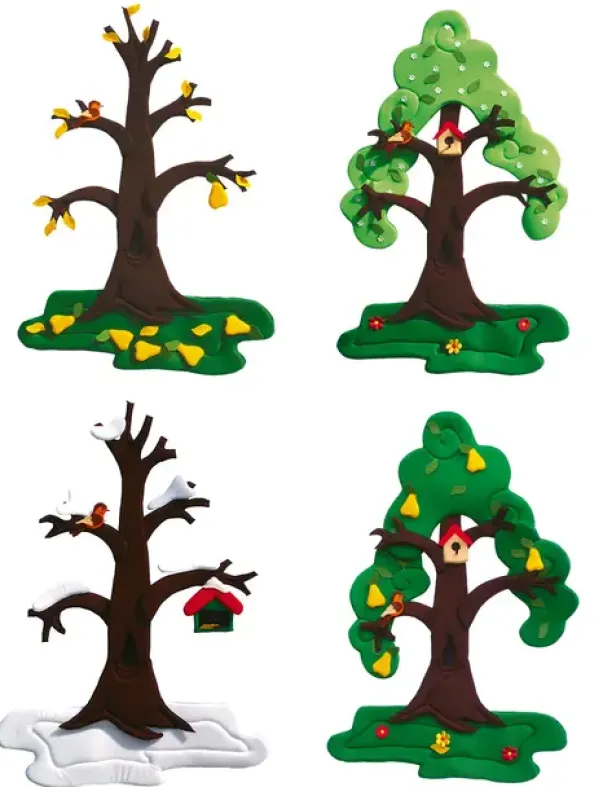 Størrelse 100x60cm. Et pæretre i 4 årstider. Laget av skum og dekket med stoff.