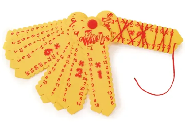 Lek med matematikk! Se på tallet på platen og tvinn tråden til riktig svar. Dersom tråden samsvarer med mønsteret på baksiden er alle svarene korrekte.